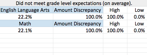 I aggregated data from the City of Chicago’s reporting, and the team was shocked to find such a disparity between the average performance of different schools. Not only were more than 1 in every 5 students failing to meet grade level learning expectations; but the discrepancy scores demonstrated a huge gap between highest performing and lowest performing schools. Our challenge solution would have to be developed with this in mind.