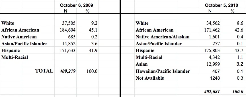 ethnic demographics data of chicago public schools during 2009 and 2010.