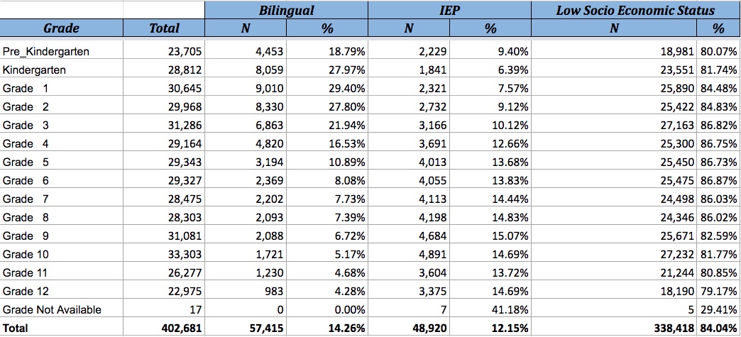 Chicago Public Schools were predominately African American and Hispanic/Latinx, 84% had low socioeconomic status, 12% had an individual education plan (IEP), and 14% were bilingual.